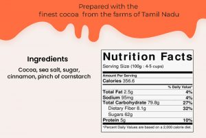 Tiggle Hot Chocolate is made in of 5 simple ingredients: Highest Grade Cocoa, Sea Salt, Sugar, Cinnamon and a pinch of cornflour. We source our cocoa from one of the best quality farms in Tamil Nadu. At our manufacturing unit, our all women team mix all the ingredients in small batches and dispatch our freshly made hot chocolate to you. 😋